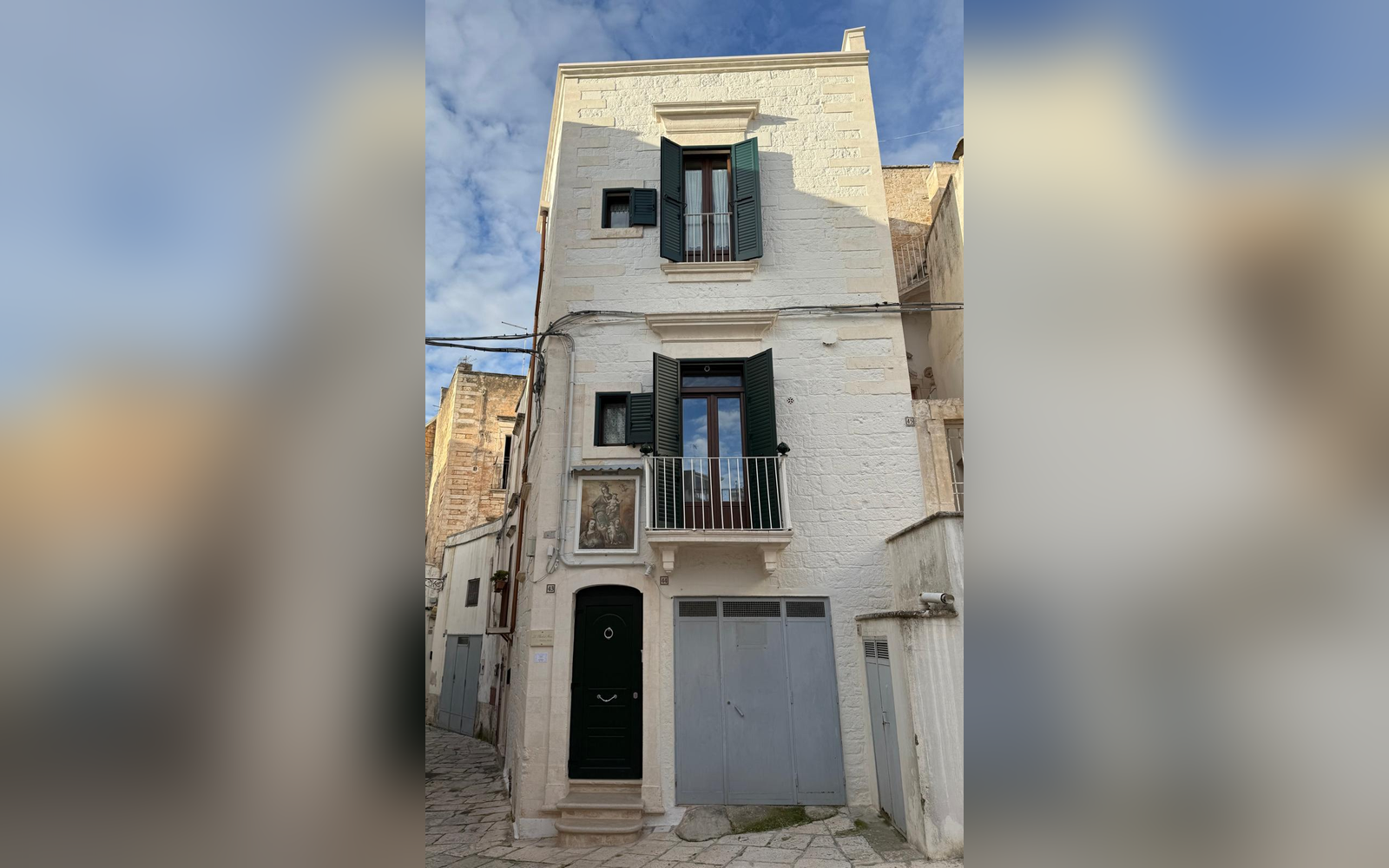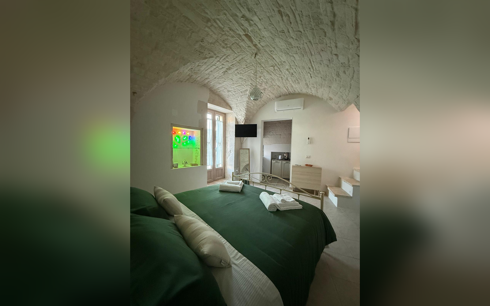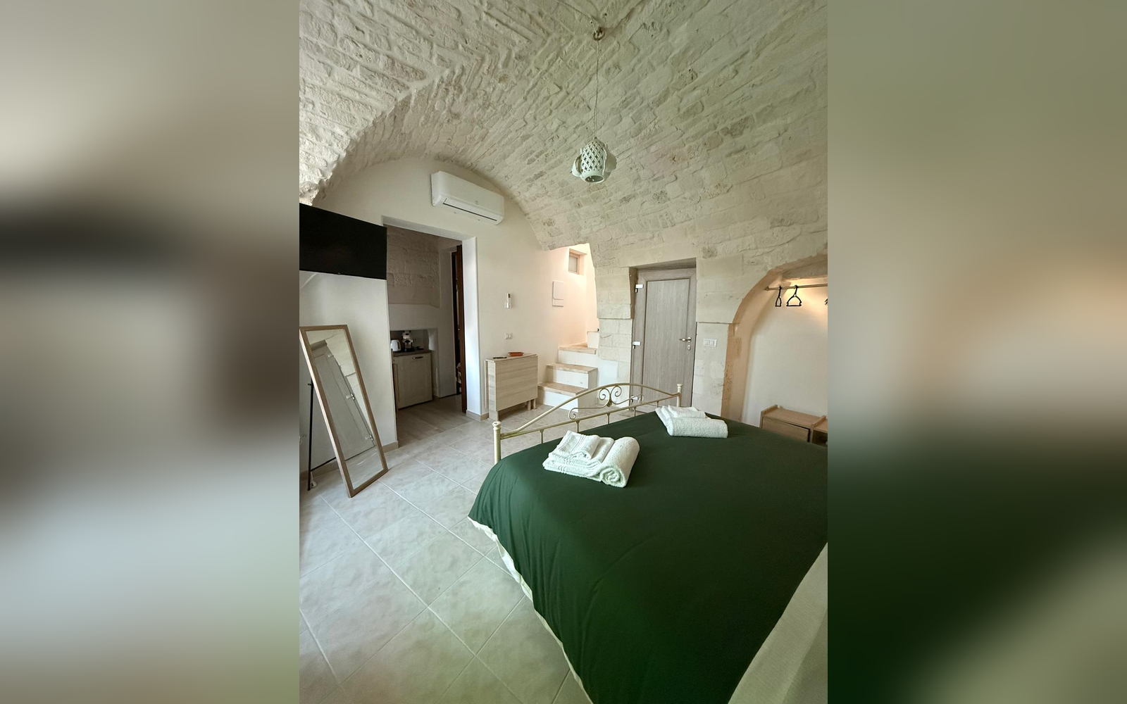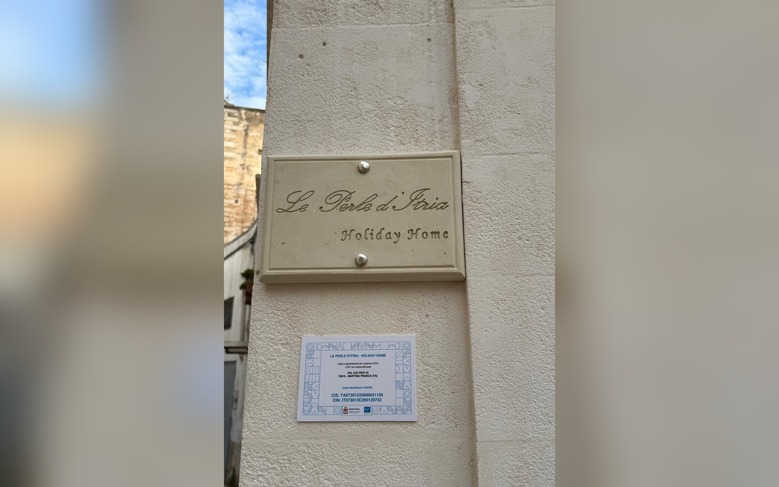 Le Perle d'Itria nasce in una palazzina storica del 1799, affacciata sulla suggestiva Piazzetta Calvino, nel cuore del centro storico di Martina Franca. Una dimora autentica, caratterizzata da volte in pietra a crociera alte 4 metri, chianche originali, inserti in pietra a vista e dettagli in ferro battuto che raccontano la storia di questa costruzione tutelata dalla Soprintendenza. La struttura si sviluppa su due livelli e ospita due monolocali indipendenti, entrambi di 25 m², ideali per coppie che desiderano vivere l'atmosfera più autentica della Valle d'Itria. Il nome "Le Perle d'Itria" nasce proprio dalla posizione privilegiata tra Martina Franca, Locorotondo e Cisternino: tre autentiche perle bianche della Puglia.
