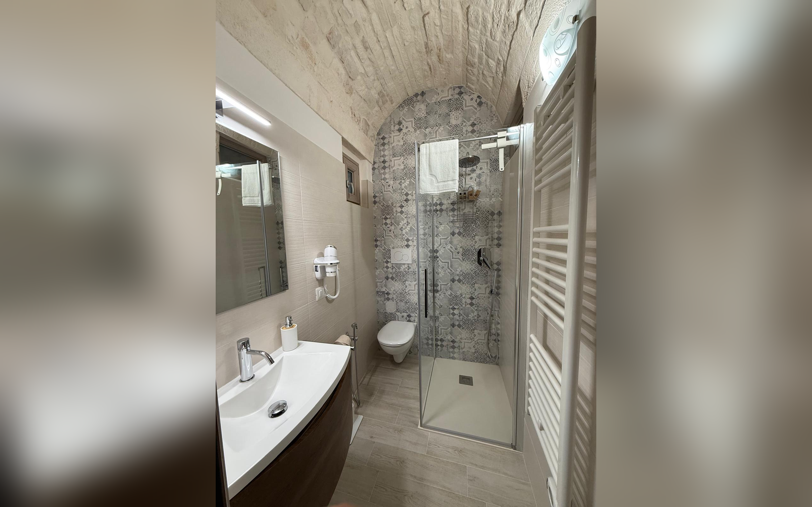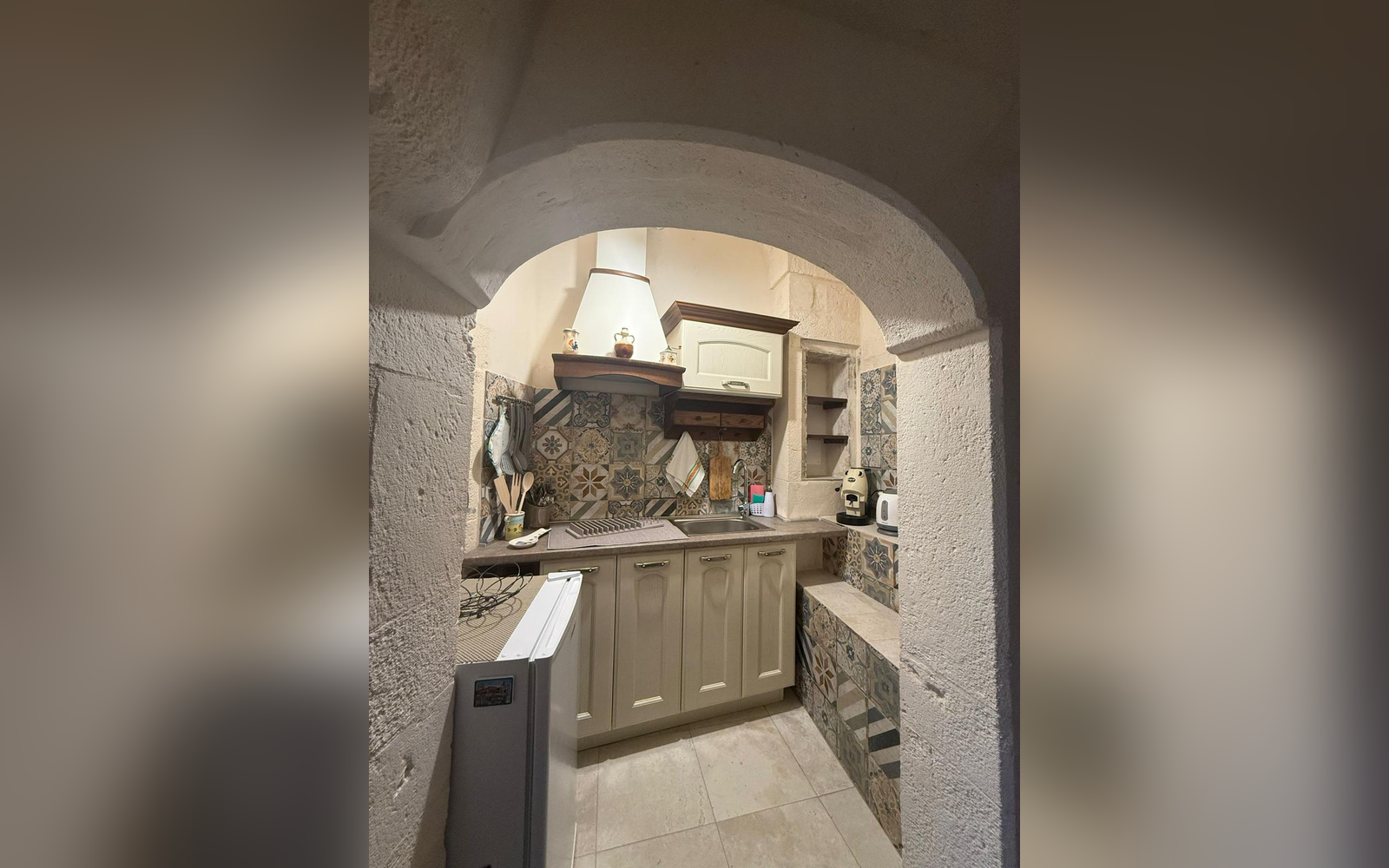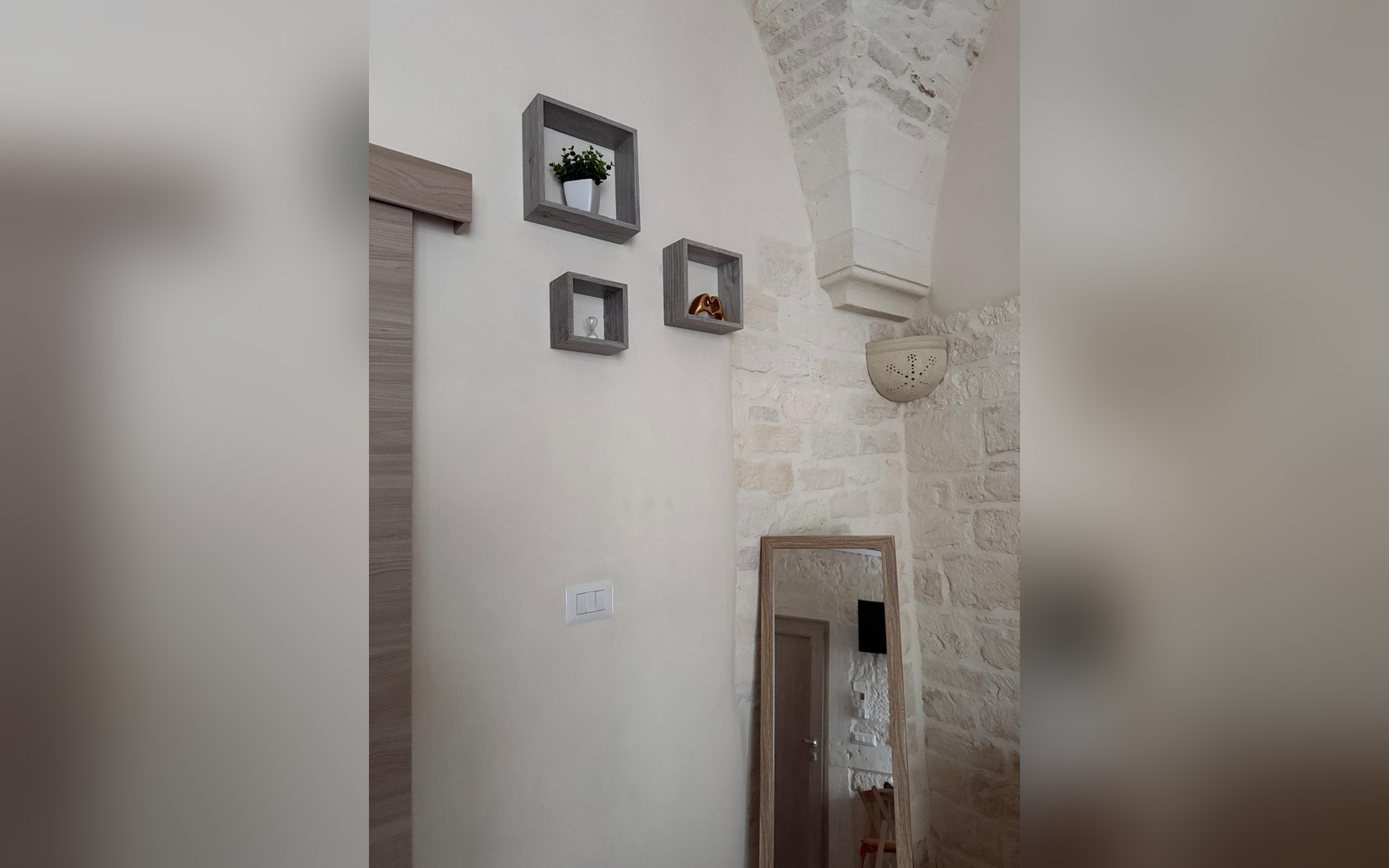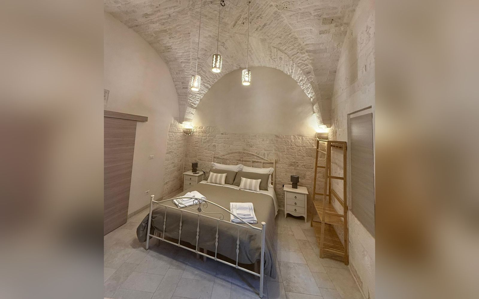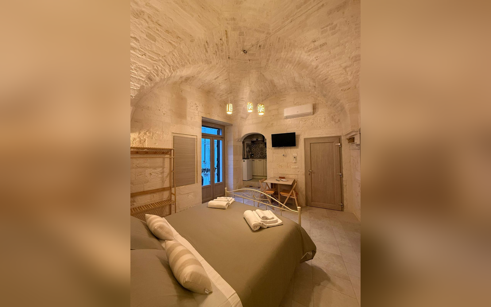 Le Perle d'Itria nasce in una palazzina storica del 1799, affacciata sulla suggestiva Piazzetta Calvino, nel cuore del centro storico di Martina Franca. Una dimora autentica, caratterizzata da volte in pietra a crociera alte 4 metri, chianche originali, inserti in pietra a vista e dettagli in ferro battuto che raccontano la storia di questa costruzione tutelata dalla Soprintendenza. La struttura si sviluppa su due livelli e ospita due monolocali indipendenti, entrambi di 25 m², ideali per coppie che desiderano vivere l'atmosfera più autentica della Valle d'Itria. Il nome "Le Perle d'Itria" nasce proprio dalla posizione privilegiata tra Martina Franca, Locorotondo e Cisternino: tre autentiche perle bianche della Puglia.