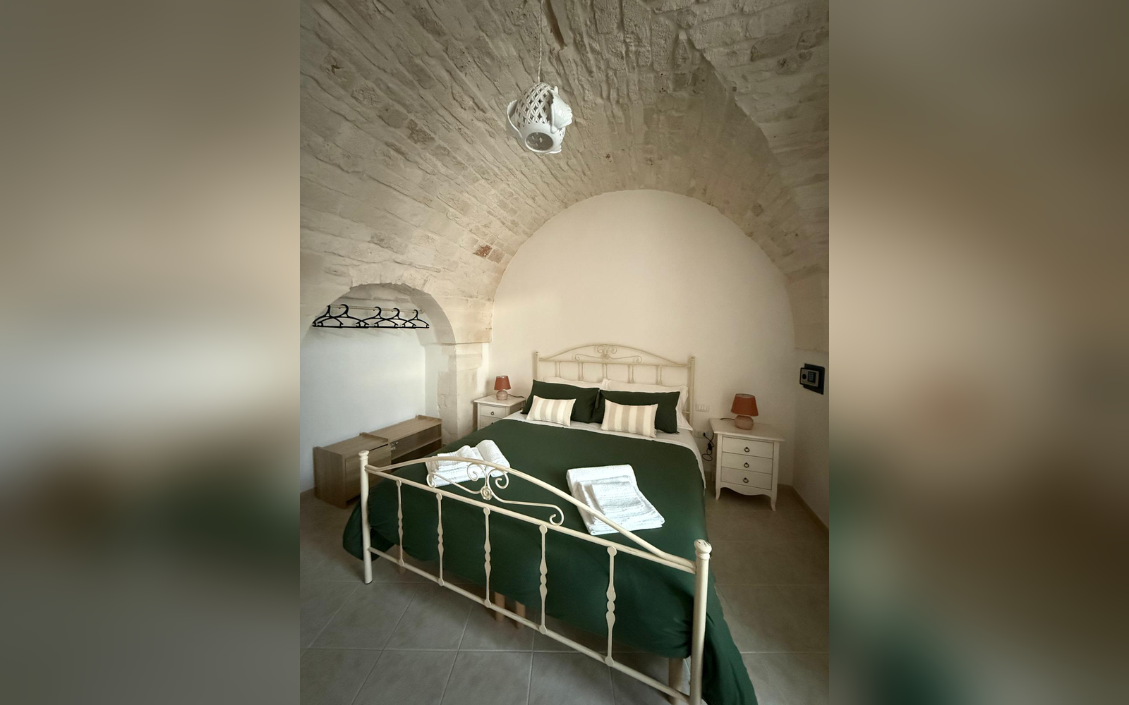 Le Perle d'Itria nasce in una palazzina storica del 1799, affacciata sulla suggestiva Piazzetta Calvino, nel cuore del centro storico di Martina Franca. Una dimora autentica, caratterizzata da volte in pietra a crociera alte 4 metri, chianche originali, inserti in pietra a vista e dettagli in ferro battuto che raccontano la storia di questa costruzione tutelata dalla Soprintendenza. La struttura si sviluppa su due livelli e ospita due monolocali indipendenti, entrambi di 25 m², ideali per coppie che desiderano vivere l'atmosfera più autentica della Valle d'Itria. Il nome "Le Perle d'Itria" nasce proprio dalla posizione privilegiata tra Martina Franca, Locorotondo e Cisternino: tre autentiche perle bianche della Puglia.